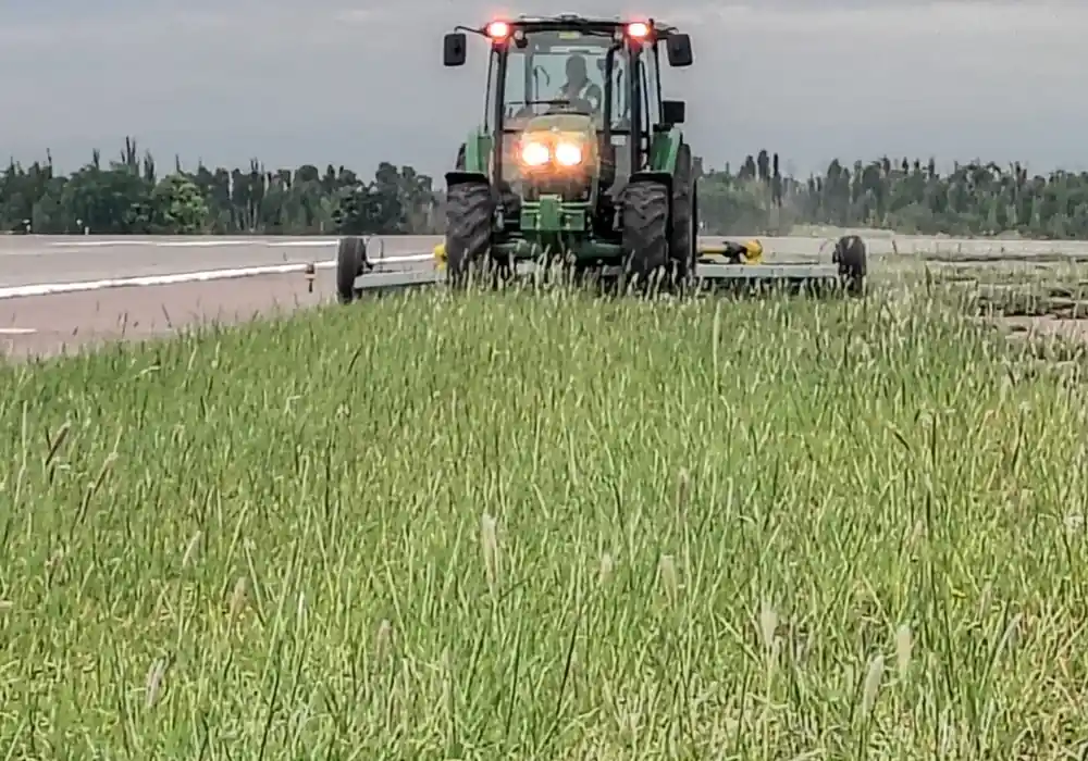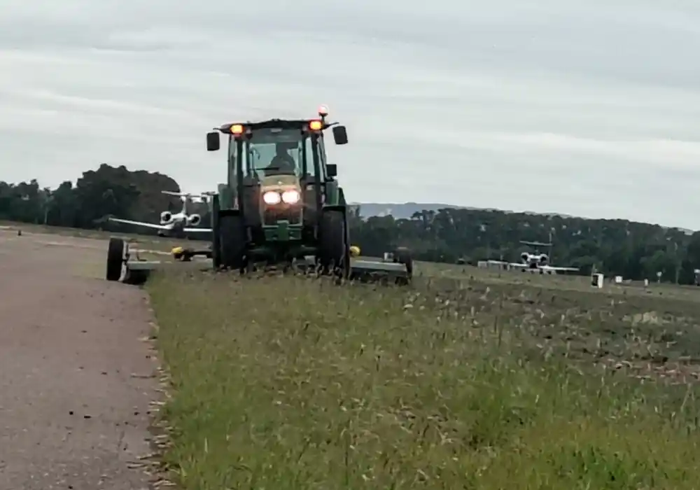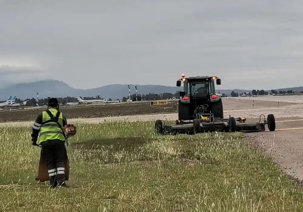 Compartimos imágenes de los trabajos realizados en el Aeropuerto de Mendoza, donde se observa a nuestro equipo de operaciones efectuando el corte de amplias extensiones de pasto.